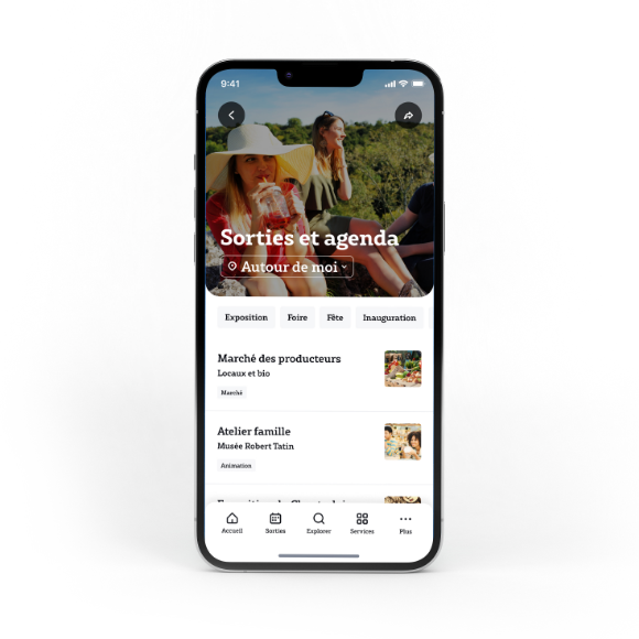 L’agenda des sorties est la fonctionnalité principale de l’application. Ce sont des données remontées des offices de Tourisme de la Mayenne. Application géolocalisée, vous pouvez rechercher facilement des sorties proches de vous et les filtrer : marché, exposition, musique, etc.